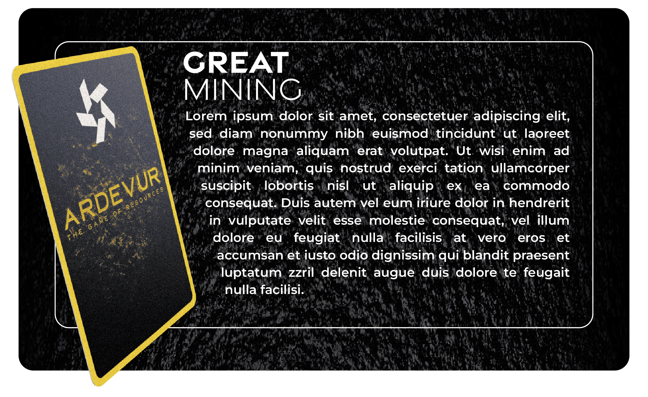 Through our affiliate company ARDEVUR Commodities, we have accumulated decades of experience in the mining industry, building and sustaining countless mining operations across the world. Our experience gives us the needed tools, resources, and expertise to produce a mining strategy game that accurately replicates the dynamics of the mining industry.